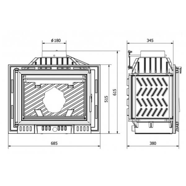 - Диаметр дымохода, мм 180